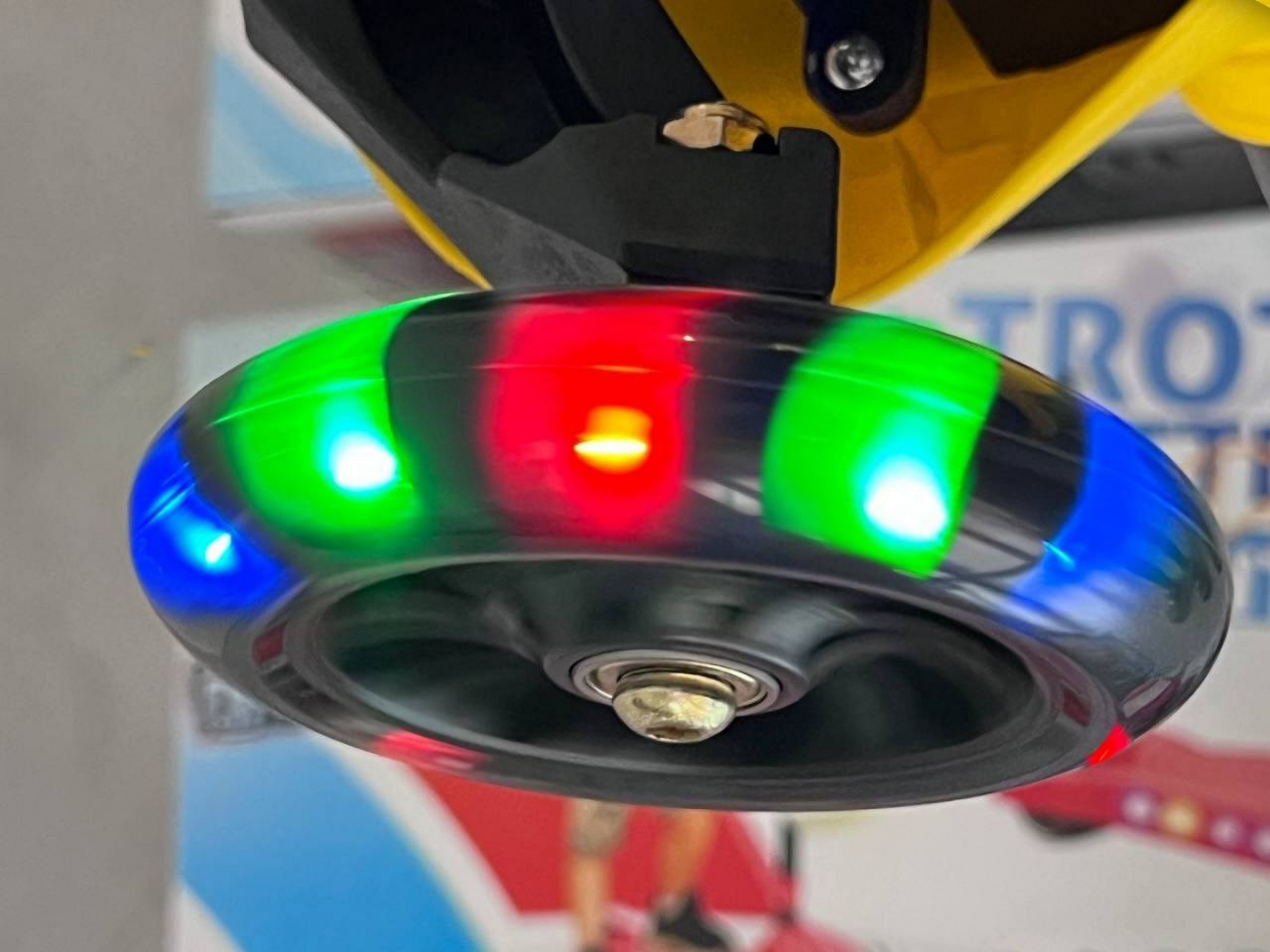 نعم، العجلات تحتوي على إضاءة LED مدمجة تعمل تلقائيًا عند القيادة دون الحاجة إلى بطاريات.